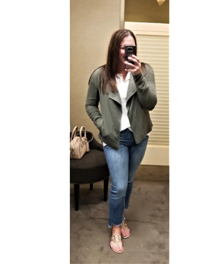 Everywhere you turn in this sale there are great jackets <3 Not sure I even tried on a single bad one! This one is a Caslon knit blazer, so stretchy comfy, only $39! TTS I'm in large. All EIGHT colors still available at post time!
